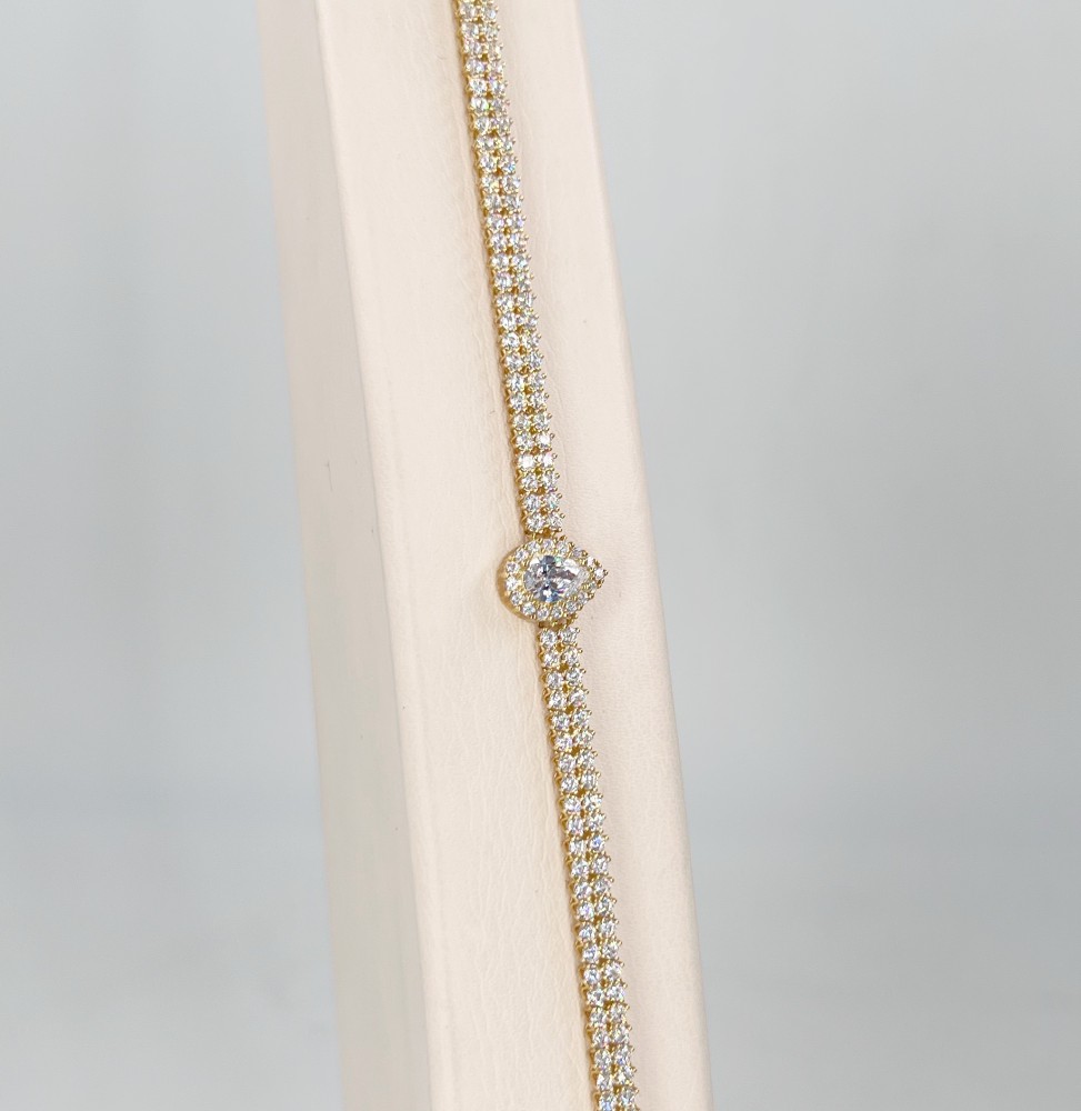 الوزن :7.03الاحجار :زركون التصميم :كوري عيـار الذهب :18 لون المعدن :اصفر طول الانسيال :الطول المعتاد من 17 الى 19 سنتيميتر