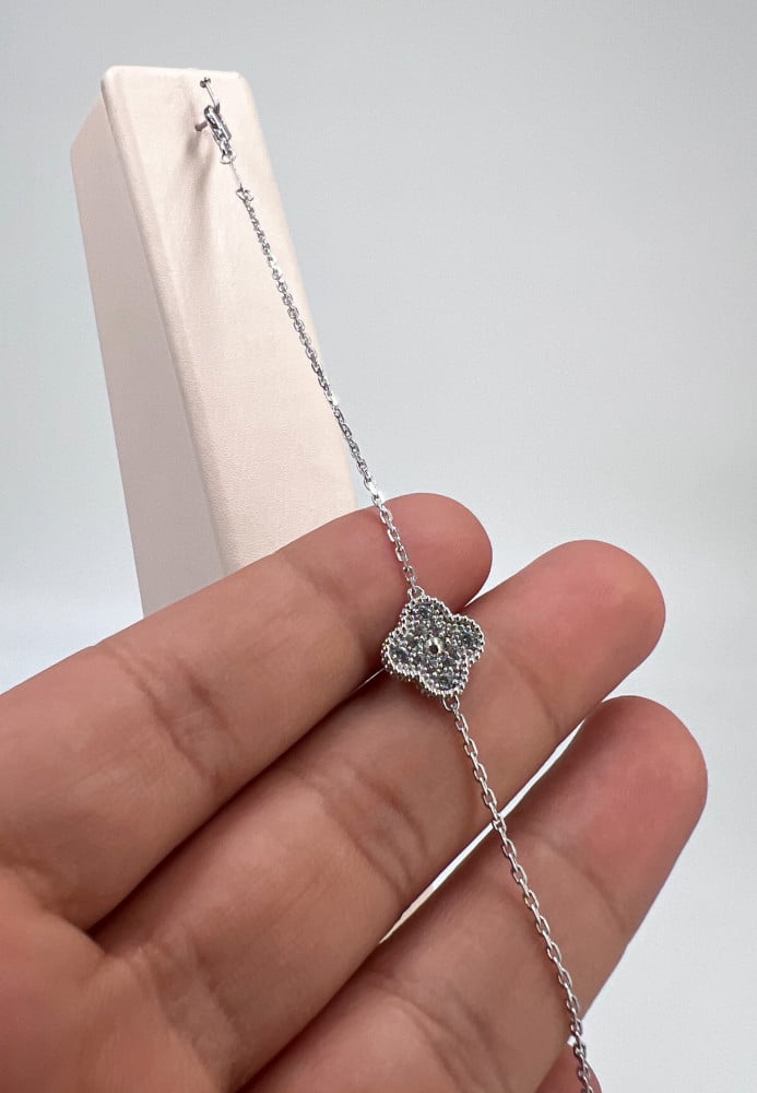 الوزن :2.42الاحجار :زركونالتصميم :ايطاليعيـار الذهب :18لون المعدن :ابيضالطول : الطول المعتاد من 17 الى 19 سنتيميتر