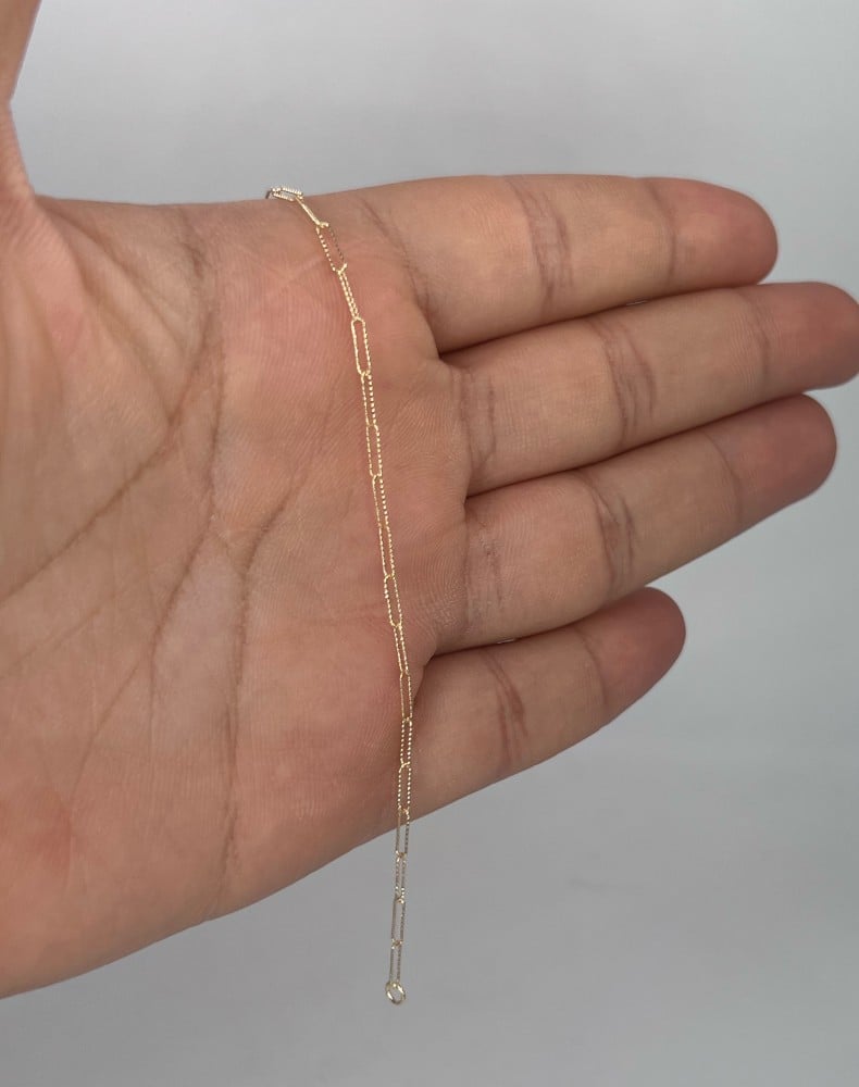 الوزن :1.19الاحجار :بدون التصميم :ايطاليعيـار الذهب :18لون المعدن :اصفر الطول :الطول المعتاد من ١٧ الى ١٩ سنتيميتر