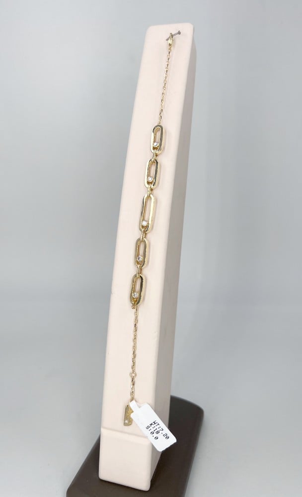 الوزن :7.20الاحجار : زركونالتصميم :ايطاليعيـار الذهب :18لون المعدن :اصفرالطول :الطول المعتاد من ١٧ الى ١٩ سنتيميت
