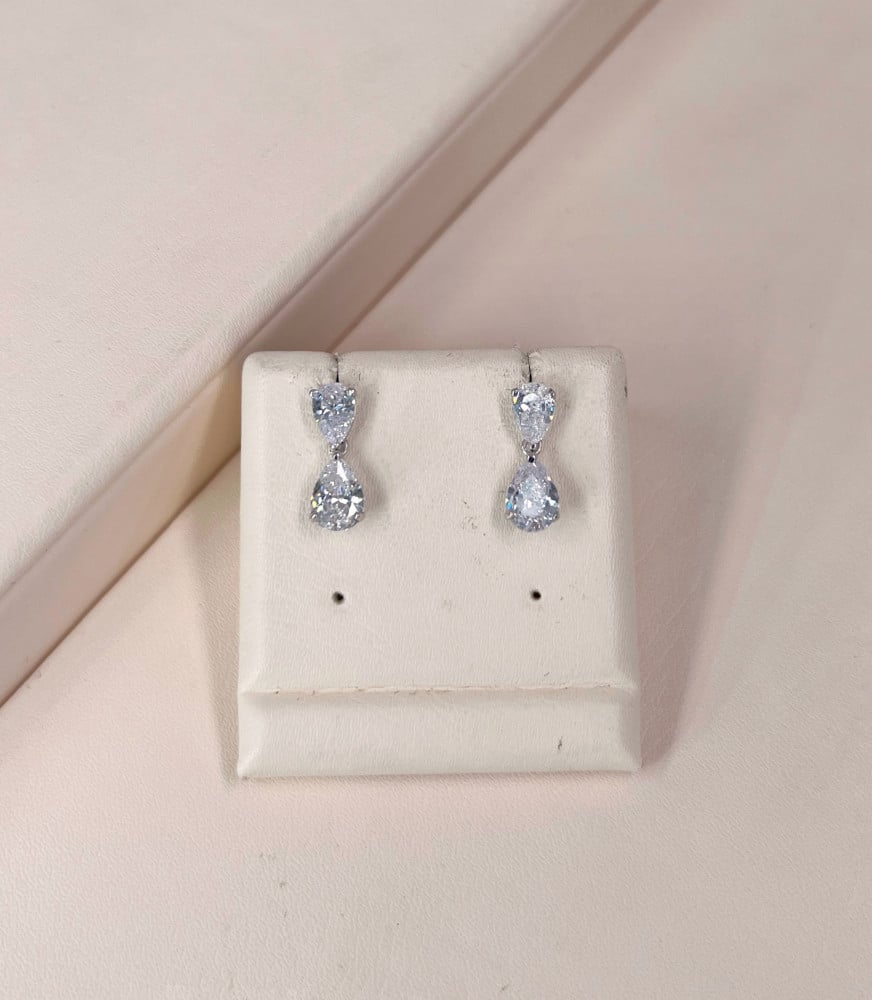 حلق ذهب ابيض تصميم دمعتين - عيار 18