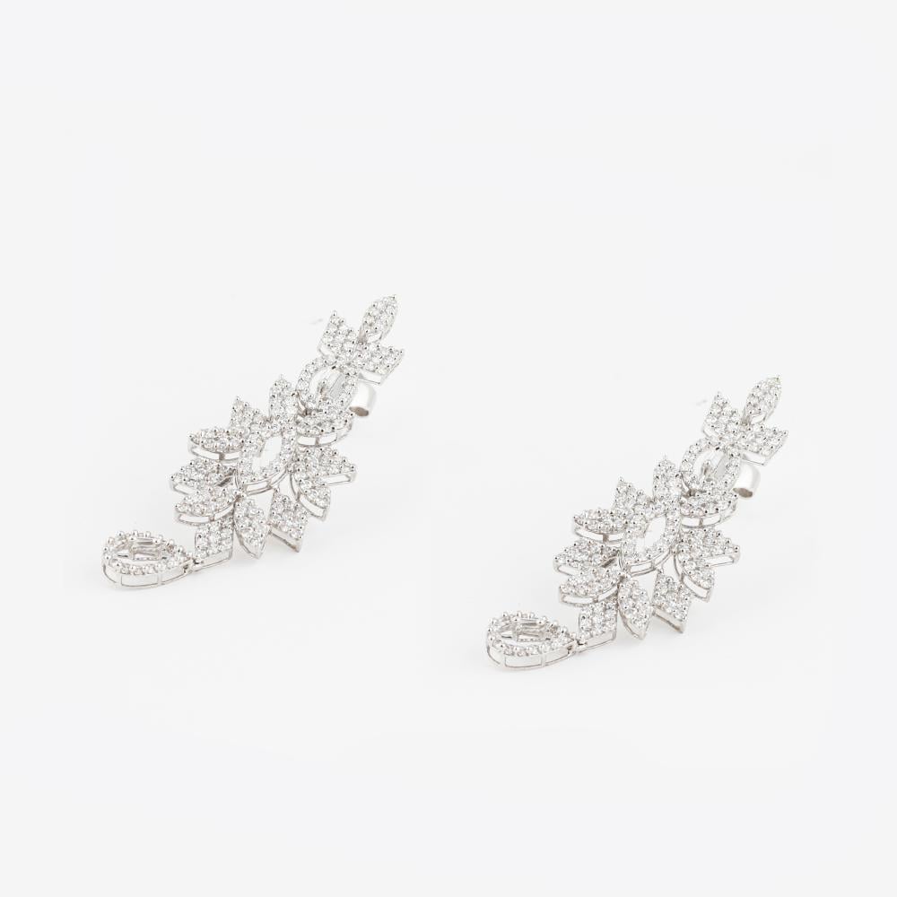 حلق ذهب كبير ابيض تصميم الماس-عيار 18