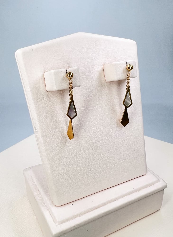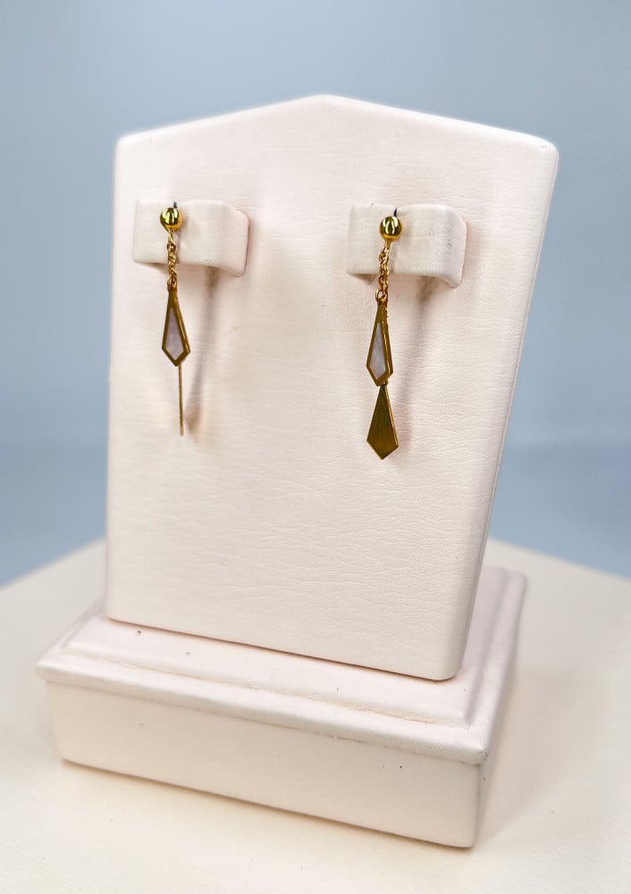 حلق ناعم دورين مرصع بحجر ابيض صدفي - عيار 18