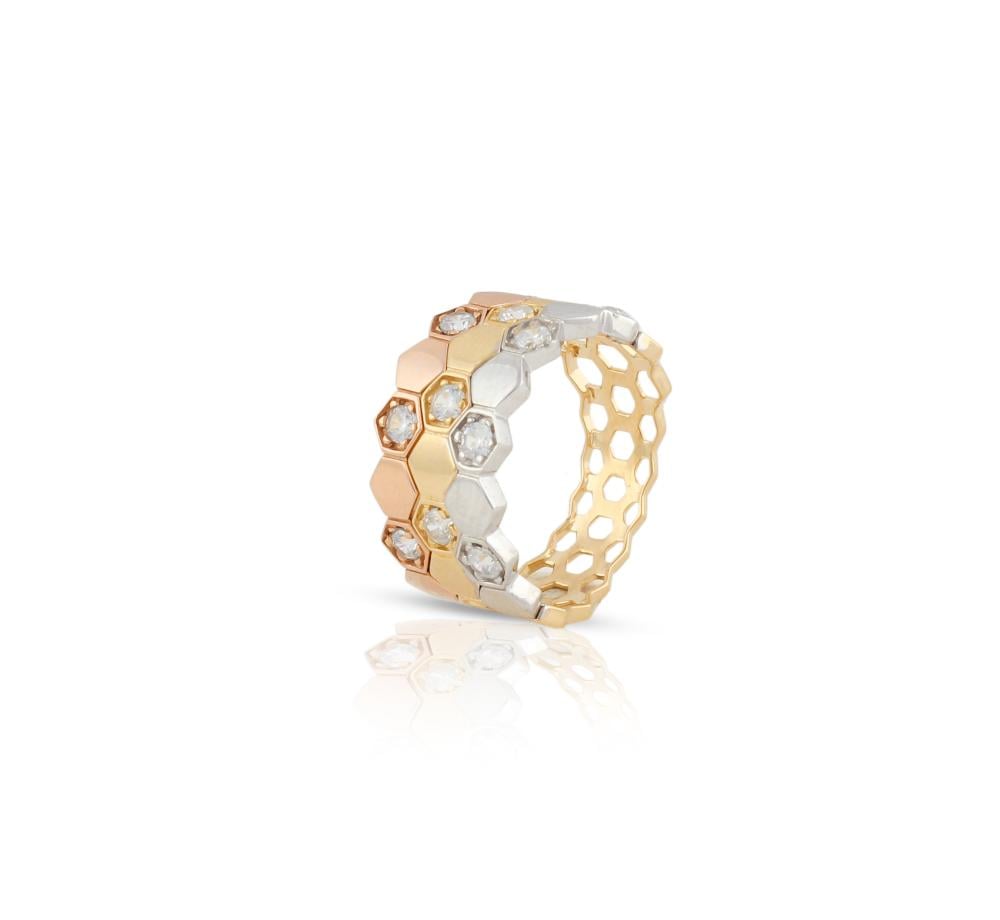 تفاصيل إضافية: خاتم التصميم العالمي بثلاثة ألوان من الذهب عيار 18 هو الاختيار المثالي للنساء اللواتي يفضلن المجوهرات ذات الطابع العصري والمتعدد الألوان. بفضل تصميمه الفريد، سيعزز هذا الخاتم إطلالتك في جميع المناسبات. سواء كنتِ ترتدينها بشكل يومي أو في المناسبات الخاصة، فإنه يمنحك مظهرًا متألقًا ومميزًا