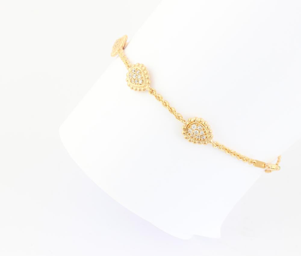 ارتدي التميز مع هذه الأسوارة الفاخرة المصنوعة من ذهب عيار 18، بتصميم أنيق يجمع بين البساطة والرقي. تضيف لمسة أنثوية ناعمة إلى إطلالتك اليومية أو مناسباتك الخاصة، وتعتبر قطعة أساسية في كل مجموعة مجوهرات راقية.