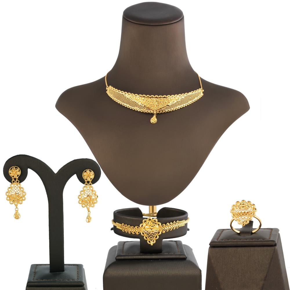 الذهب عيار 21 يحتوي على 87.5% من الذهب النقي، مما يجعله أكثر متانة من الذهب عيار 24 وأكثر مرونة من الذهب عيار 18، ما يضمن بقاء الطقم لامعًا وجميلًا لفترة طويلة. تتنوع التصاميم بين الكلاسيكية والعصرية، مما يتيح لك اختيار الطقم الذي يناسب ذوقك الخاص. سواء كنت تبحث عن لمسة فخمة لحفل أو هدية رائعة لشخص عزيز، طقم الذهب عيار 21 يقدم لك خيارًا لا يُقاوم.