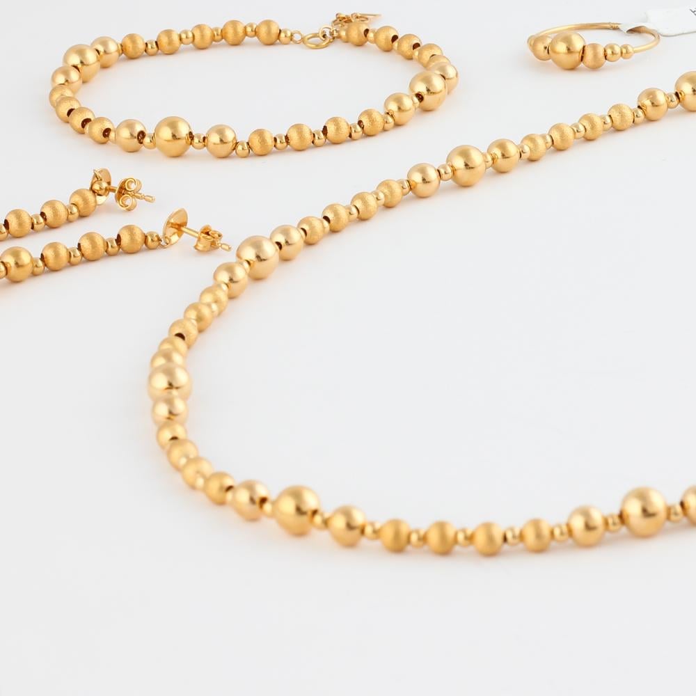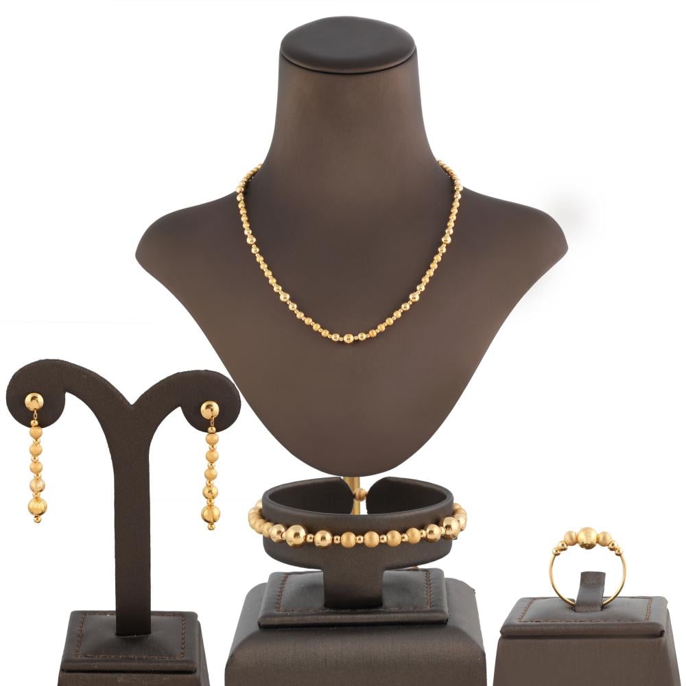 **طقم ذهب تصميم أنيق من مجوهرات جواد الاربش** هو اختيارك المثالي لإضفاء لمسة من الفخامة والجمال على إطلالتك. يتميز هذا الطقم الفاخر بتصميمه الراقي والمبهر، الذي يعكس ذوقًا رفيعًا وحرفية عالية، وهو مصنوع بعناية فائقة لتلبية كافة توقعاتك من حيث الجودة والأناقة.