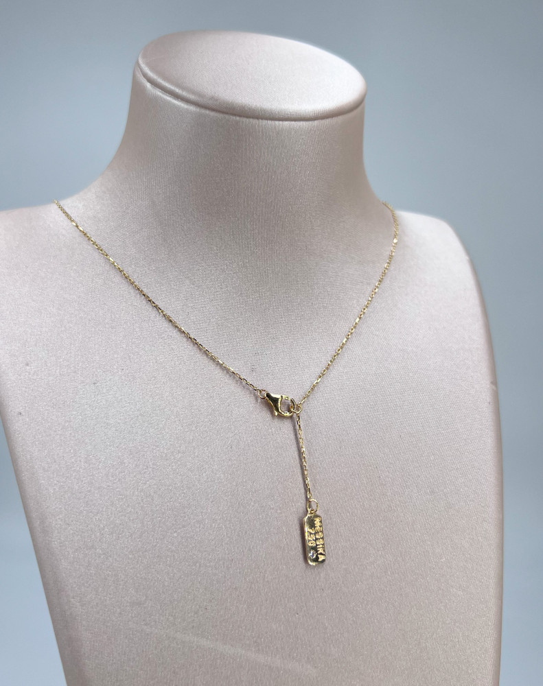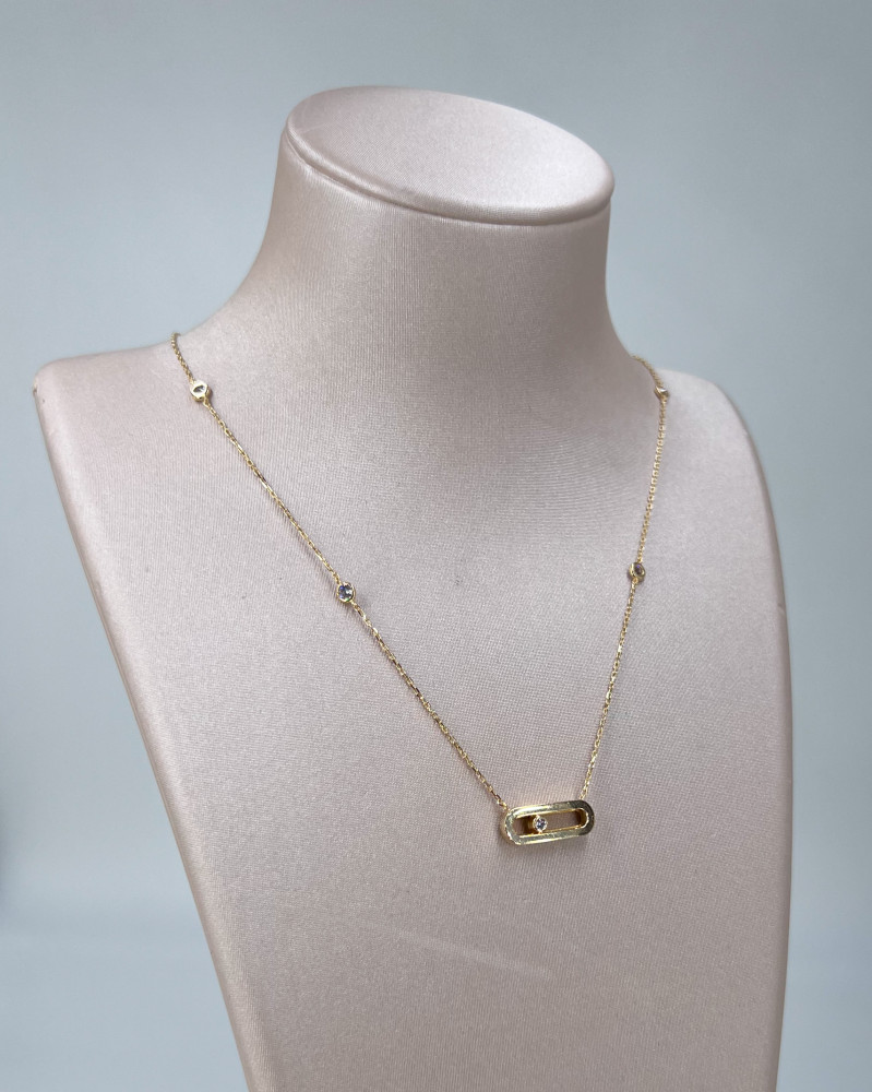 الوزن :3.86الاحجار :زركون التصميم :ايطالي عيـار الذهب :18 لون المعدن :اصفر الطول : 21 سنتيميتر ( القياس من جانب واحد )
