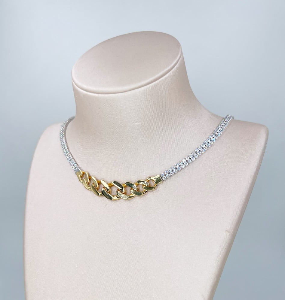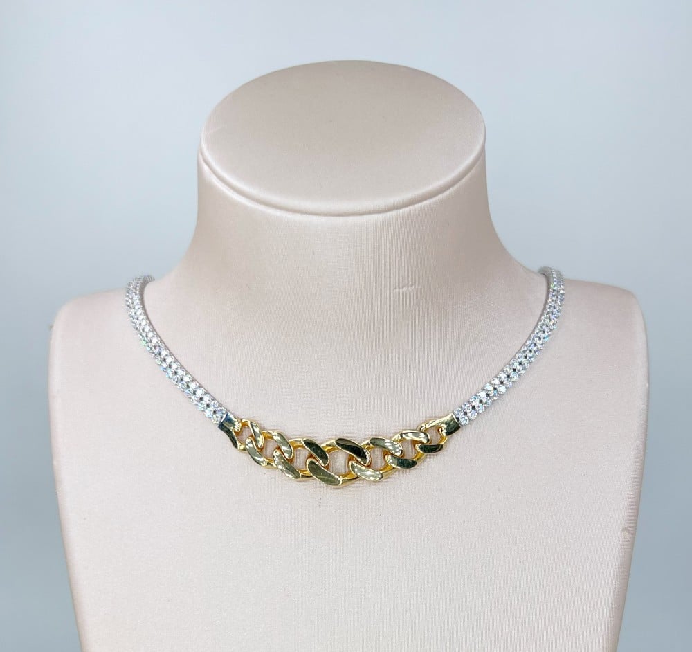 الوزن :13.28الاحجار :زركونالتصميم :تركيعيـار الذهب :18لون المعدن :اصفر و ابيض الطول :الطول المعتاد من 20 الى 22 سنتيميتر