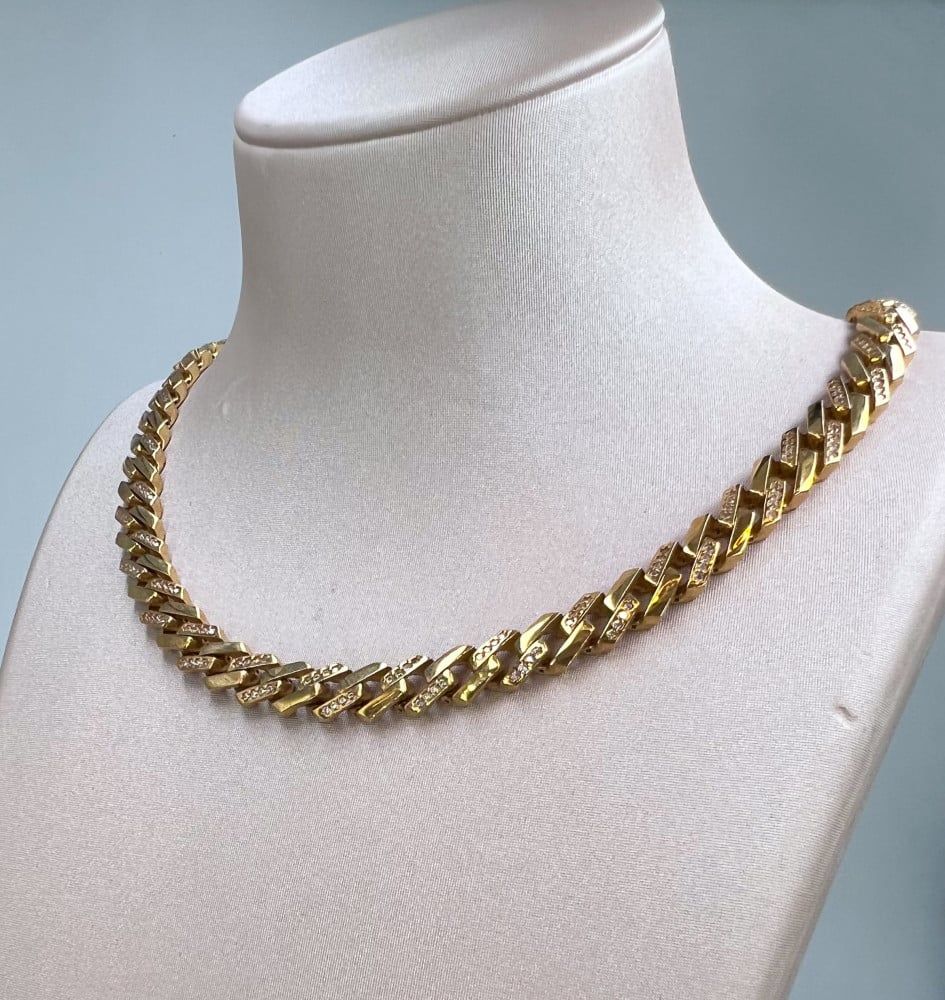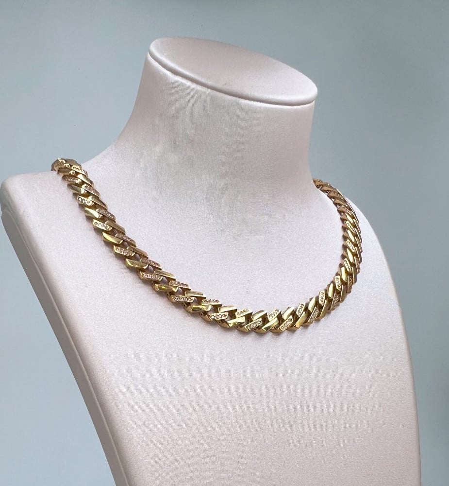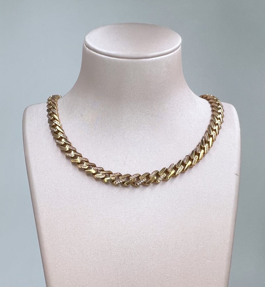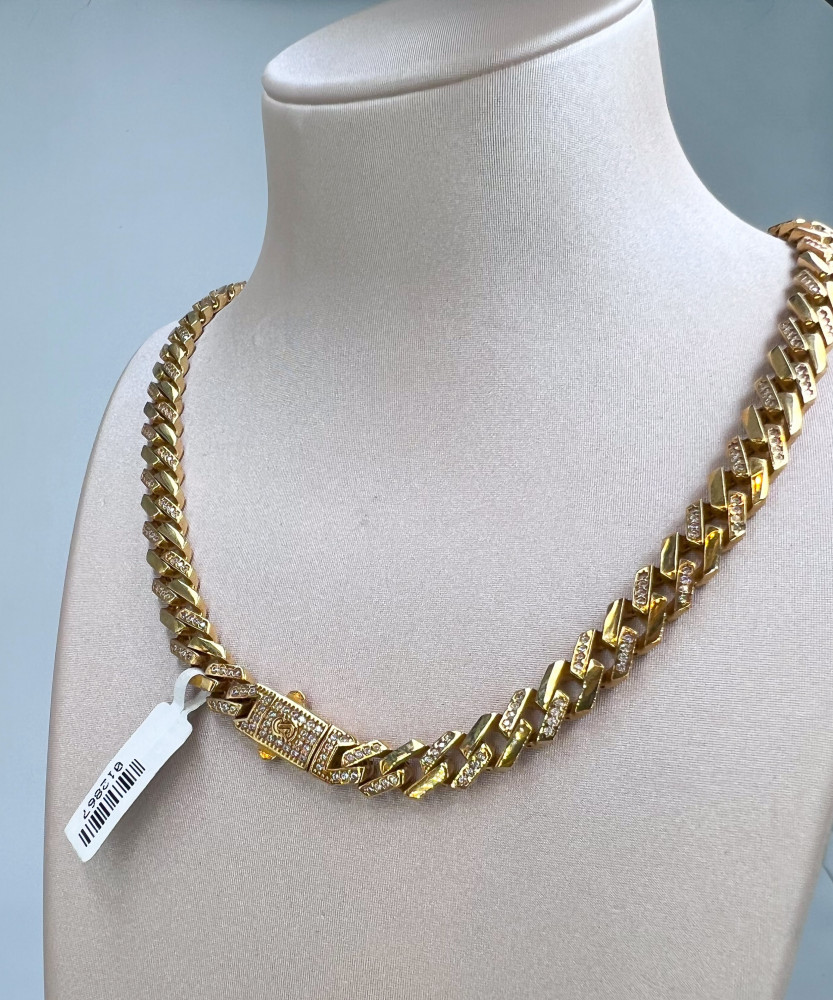 الوزن :36.71الاحجار :زركون التصميم :ايطالي عيـار الذهب :18لون المعدن :اصفر الطول :22.5 سنتيميتر الوزن الثقيل