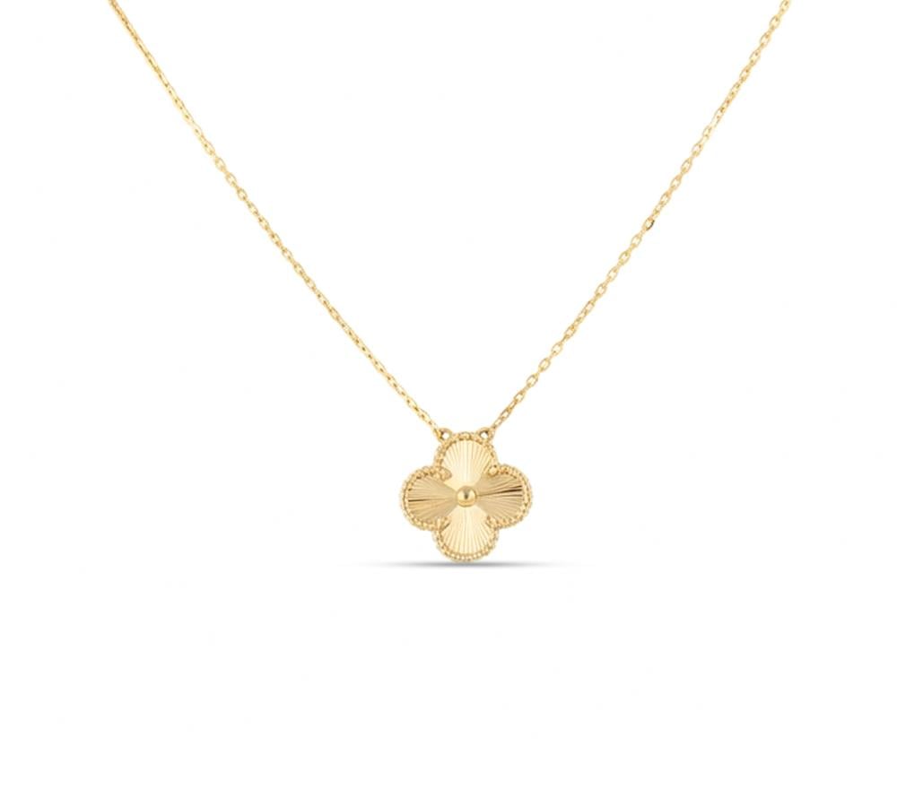 يتميز العقد بلمعانه المذهل وجودة خاماته التي تضمن ثبات اللون وبريق الذهب الحقيقي على المدى الطويل.