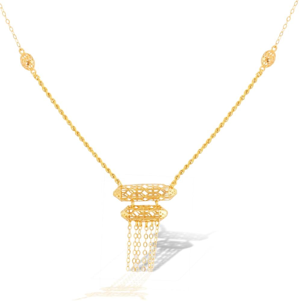 - عيار الذهب: العقد مصنوع من ذهب عيار 21، وهو مزيج من الذهب الخالص مع بعض المعادن الأخرى مثل النحاس أو الفضة، مما يضيف له المتانة والقوة مع الحفاظ على لمعانه الأصلي.