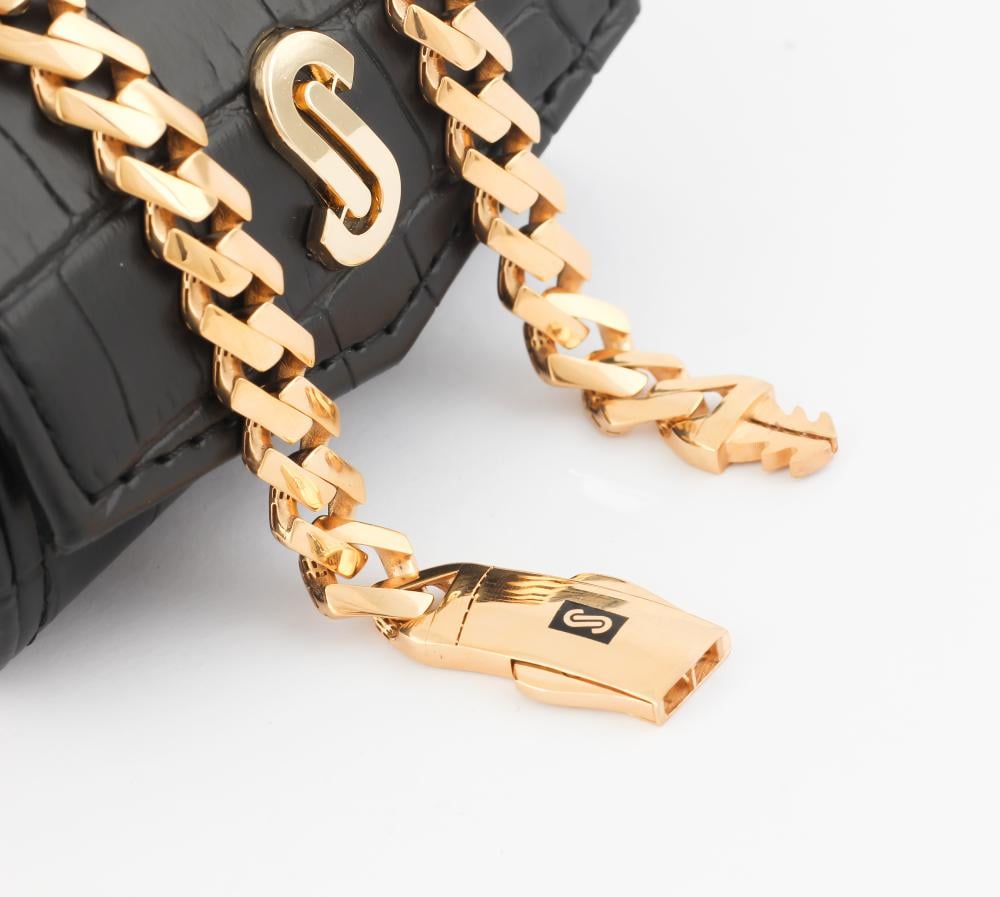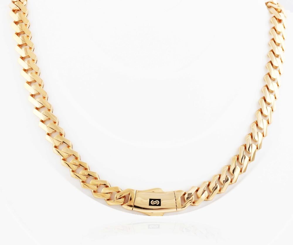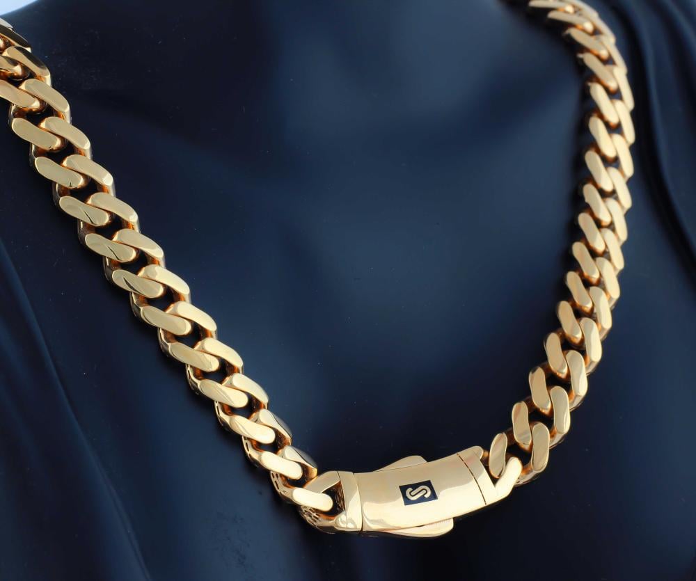 - التصميم: سلسلة موناكو (Monaco Chain) المميزة بحلقاتها المتشابكة البراقة