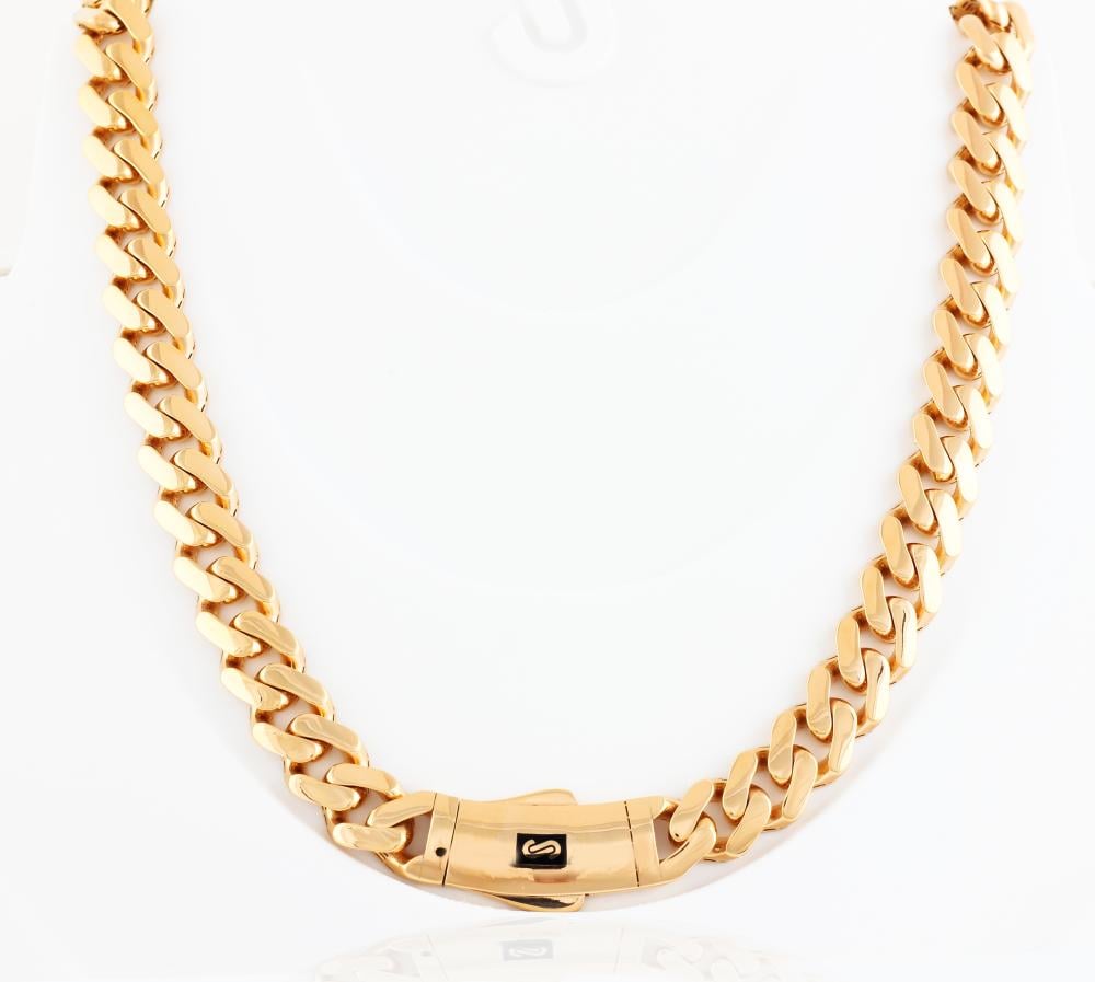 - التصميم: سلسلة موناكو (Monaco Chain) المميزة بحلقاتها المتشابكة البراقة