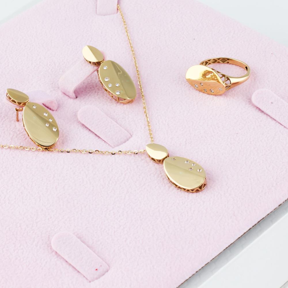 نص طقم ذهب بتصميم عصري فاخر، مصنوع من الذهب عيار 18 عالي الجودة ويزن 8.20 جرام. يتميز الطقم بتفاصيله الدقيقة وأناقتِه التي تتماشى مع أحدث صيحات الموضة. يجمع التصميم بين البساطة والجمال، حيث يعكس الذوق الرفيع والفخامة بأسلوب عصري يناسب مختلف المناسبات. الطقم مثالي لمن يبحثون عن قطعة ذهبية تضيف لمسة من التألق والأناقة لإطلالاتهم، ويتميز بالراحة في الارتداء مع الحفاظ على المتانة وجودة الذهب عيار 18 الذي يضمن له بريقًا دائمًا.
