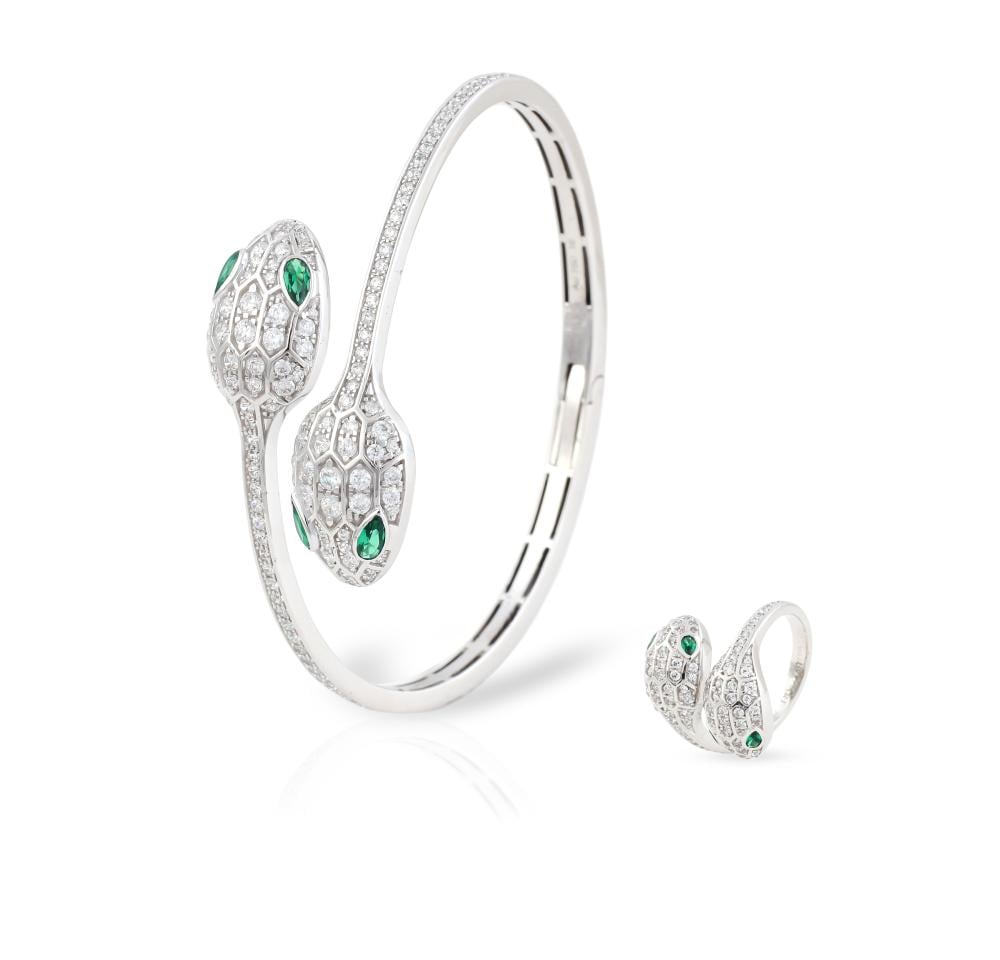 - المكونات: يتضمن السوار والخاتم معًا في طقم واحد، يتميز بتفاصيل دقيقة ومثيرة.