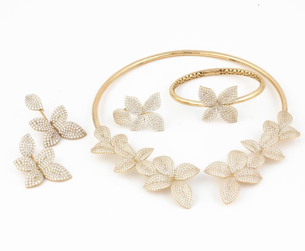 اختياريك لهذا الطقم هو تأكيد على حبك للمجوهرات الراقية التي تواكب أحدث صيحات الموضة العالمية، مع الحفاظ على الطابع الكلاسيكي الفخم الذي لا يمر عليه الزمن.