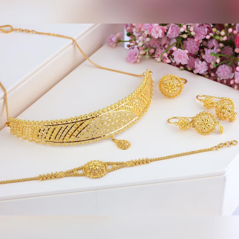 الذهب عيار 21 يحتوي على 87.5% من الذهب النقي، مما يجعله أكثر متانة من الذهب عيار 24 وأكثر مرونة من الذهب عيار 18، ما يضمن بقاء الطقم لامعًا وجميلًا لفترة طويلة. تتنوع التصاميم بين الكلاسيكية والعصرية، مما يتيح لك اختيار الطقم الذي يناسب ذوقك الخاص. سواء كنت تبحث عن لمسة فخمة لحفل أو هدية رائعة لشخص عزيز، طقم الذهب عيار 21 يقدم لك خيارًا لا يُقاوم.